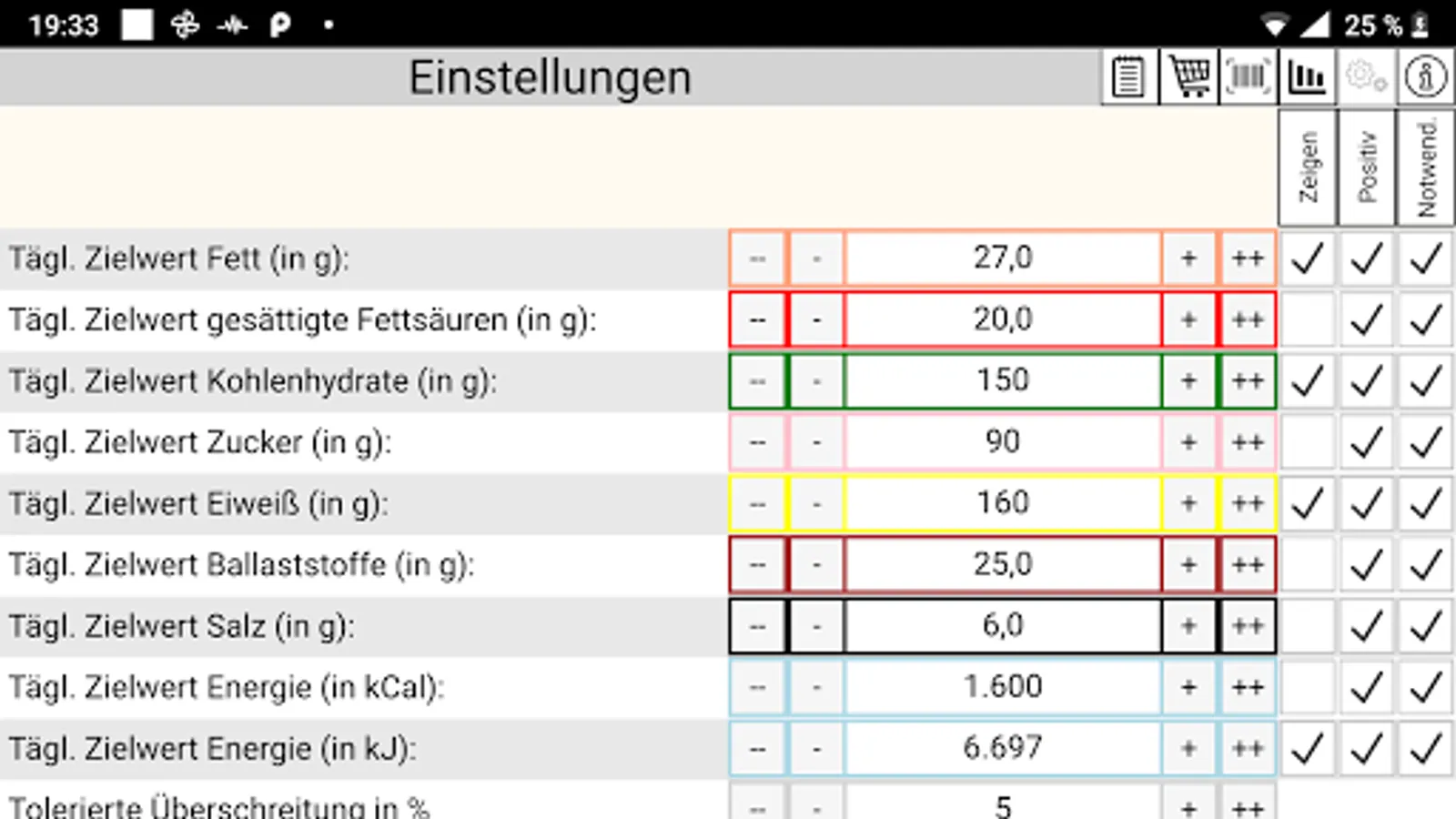Do you want to lose weight? Do you need to gain weight? Are you supposed to consume less salt, need more fiber or want to reduce sugar? Then precision landing is your app!