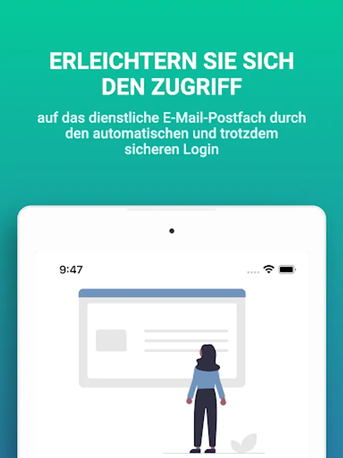 You can only access your work e-mail inbox via your device's browser. This means that no emails are saved on your device. This app basically works like your browser: the app displays your mailbox via the web interface. You just save a few seconds each time you log in, which should make using your mailbox smoother.