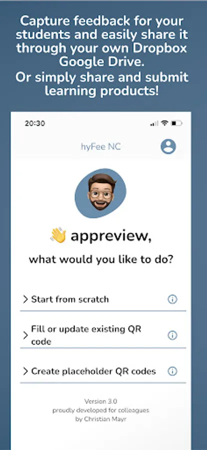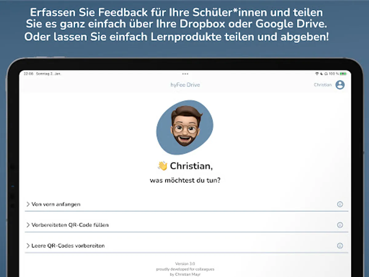 > Upload: When you are done, upload the feedback for the student with a tap. Hyfee takes care of storing the files, so you don't have to worry about folders and file formats yourself.