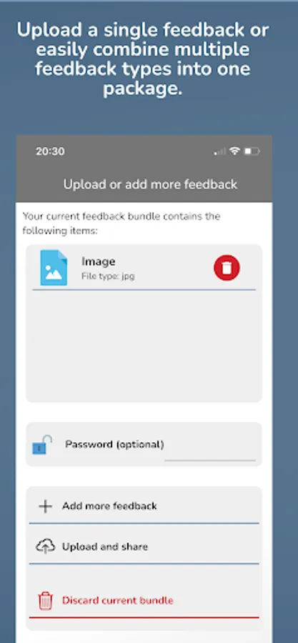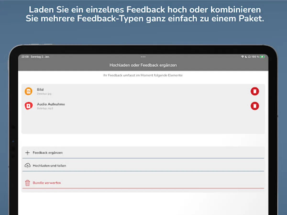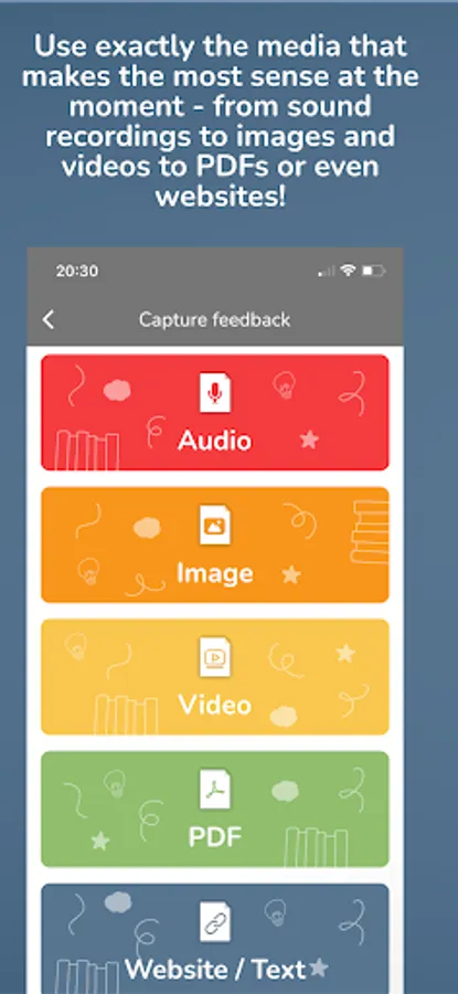 > Capture: You record audio, images or videos directly into hyfee or select existing media from the photo library. If necessary, simply combine any feedback types into one package.