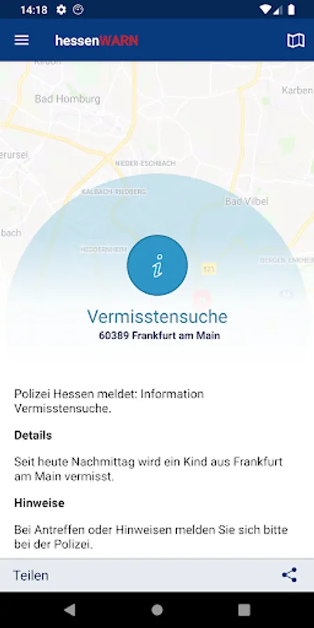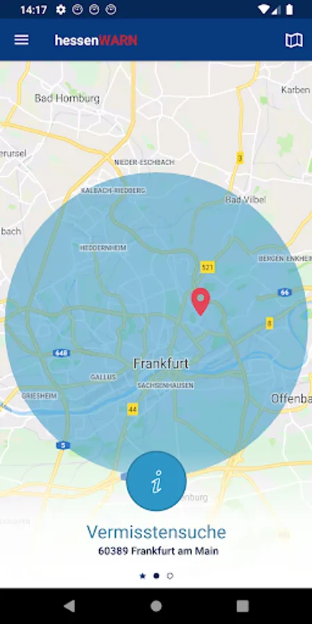 The system offers hazard and disaster warnings from various Hessian state and federal agencies from a single source. hessenWARN offers the possibility to use different functionalities, warnings and information bundled in a single application.