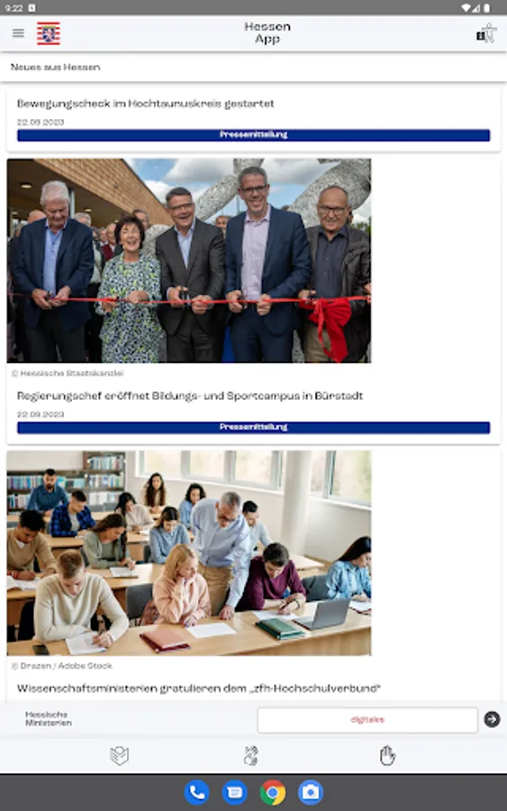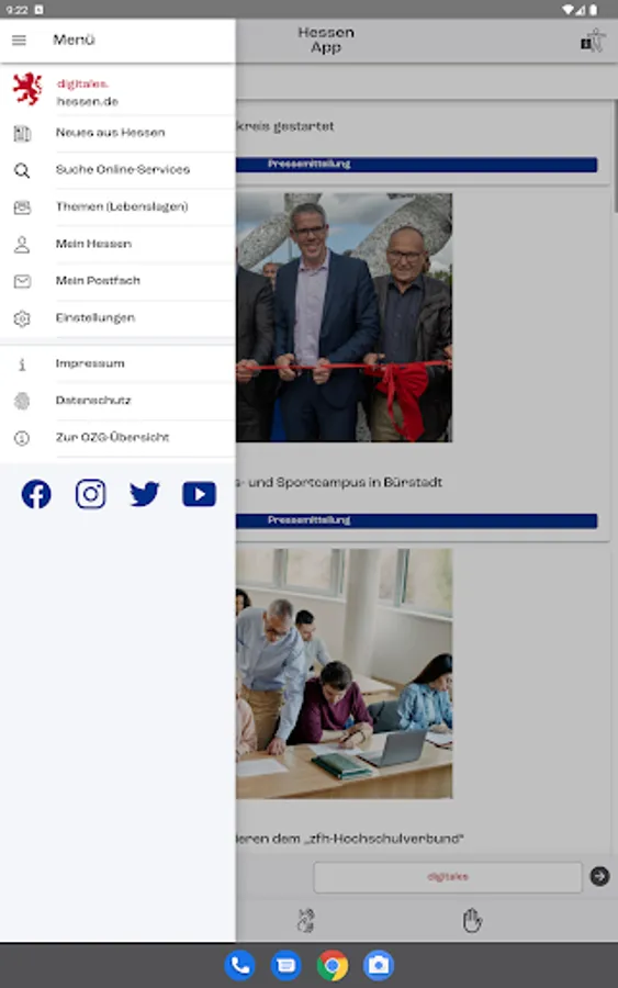The Hessen app makes the online services of the state of Hesse available to citizens for mobile devices. You will also receive news about Hesse. The focus here is on making the services as close to the citizens as possible.