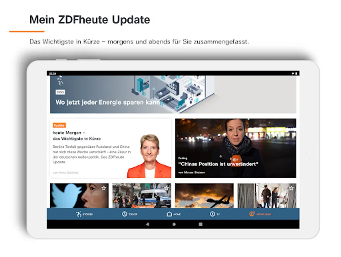 With the new ZDFheute app you are always up to date. Videos, live streams, texts and interactive stories all about business, sports, politics and weather news bring you up to date at all times. You can also use practical functions such as videos on demand as well as news tickers and push notifications that you can tailor to your personal interests.