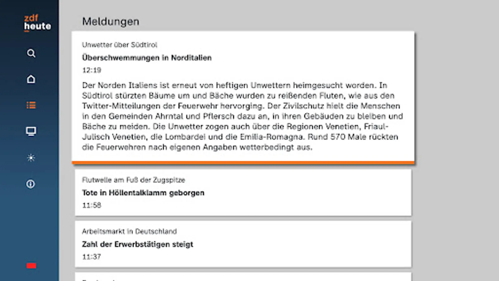 - Category navigation: You can access the latest news from the politics, economy, panorama, digital, sports and weather sections directly via the top navigation bar.