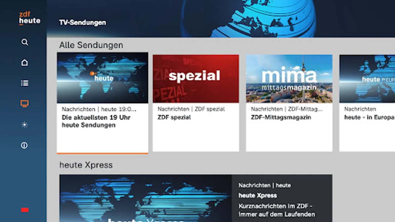 - Television on the go: The ZDF information programs in live stream and on demand - including "heute journal", "heute 19 o'clock", "ZDF Spezial", ZDF documentaries, "maybrit illner", "Auslandsjournal", "Frontal 21" and "Berlin direkt".