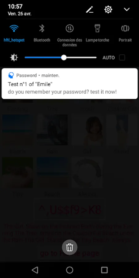 First of all, the user must create a test composed with pictures, then after 10 minutes there will be a test and he has to enter the picture's sequence. If it is a success he win experience otherwise he lose experience and can even lose a level.