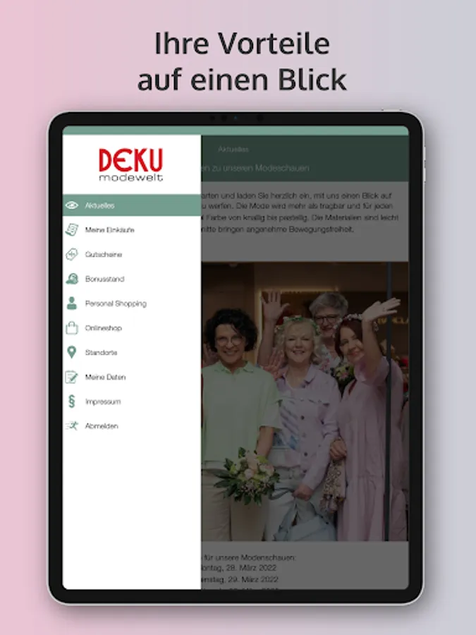 • News: Current trends, interesting offers and everything that's going on in the DEKU fashion world and Zone 1 - you won't miss any news. Take advantage of our exclusive events.