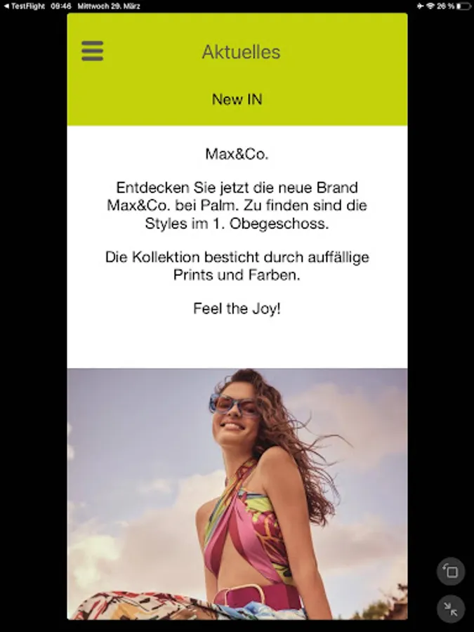 With the Palm+ app, you can conveniently and easily use all the advantages of your customer card digitally and never miss the latest fashion trends again.