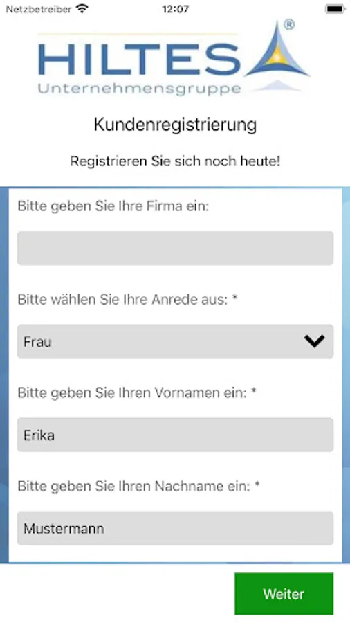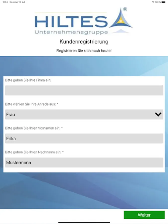 APP for the mobile registration of customers (end users) in the HILTES 5000 merchandise management system installed at a dealer or in the HILTES cloud.