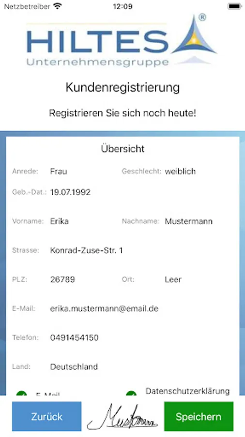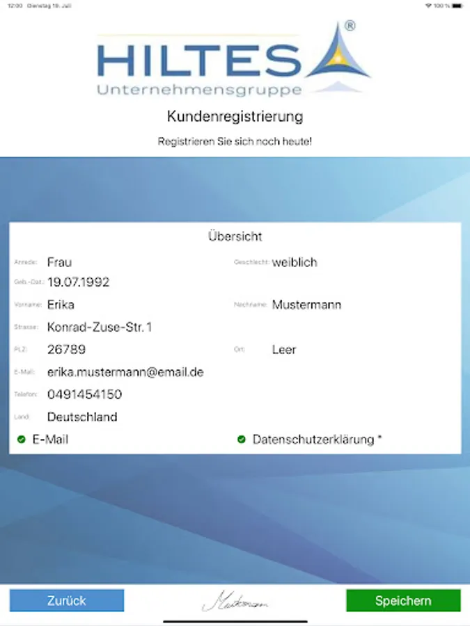 • Archiving of the registrations made in this way, including signature for GDPR-compliant storage of the data