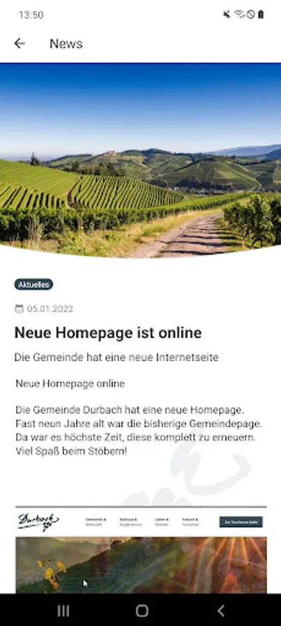 This app gives you quick and easy access to the latest news from the municipality of Durbach. In addition, you can find out about events and other appointments and transfer them directly to your own calendar. You will receive information from the town hall by means of push messages, the receipt of which you can control yourself by selecting individual categories. Always stay up to date - with your Durbach app.