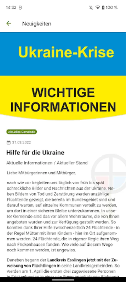 This app gives you quick and easy access to the latest news from the municipality of Frickenhausen. In addition, you can find out about events and other appointments and transfer them directly to your own calendar. You will receive information from the town hall by means of push messages, the receipt of which you can control yourself by selecting individual categories. Always stay up to date - with your Frickenhausen app.