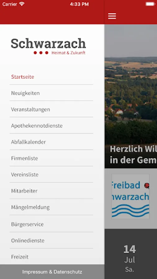 With this app you get quick and easy access to current reports from the Schwarzach community. You can also find out about events and other dates and add them directly to your own calendar. You will receive information from the town hall via push messages, the receipt of which you can control yourself by selecting individual categories. Always stay up to date – with your Schwarzach app.