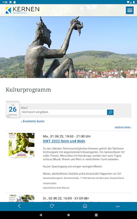 Liveable, committed, up-to-date - discover the municipality of Kernen with all its facets. The app informs you about current events, news and accommodation options, among other things.