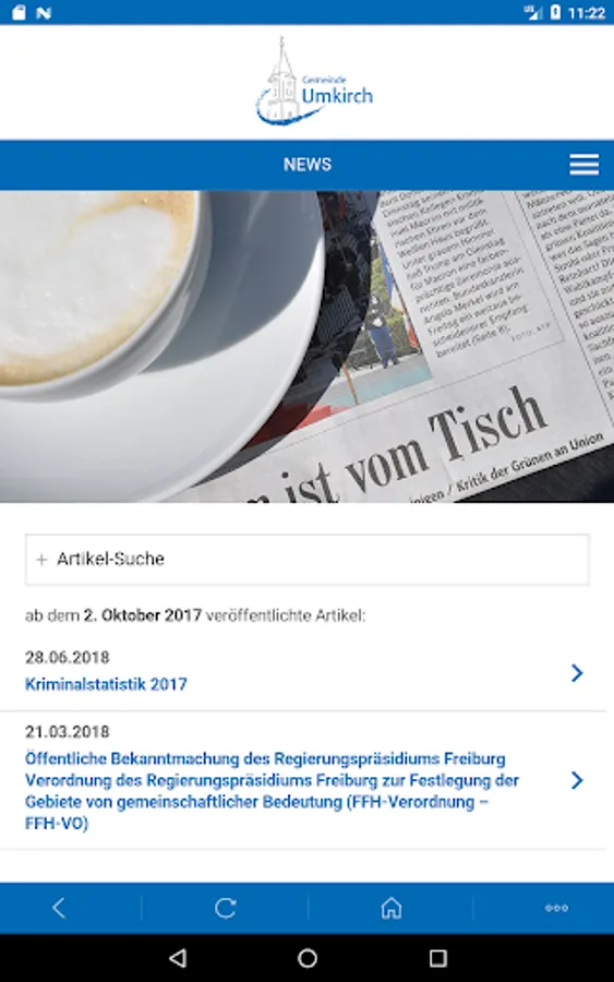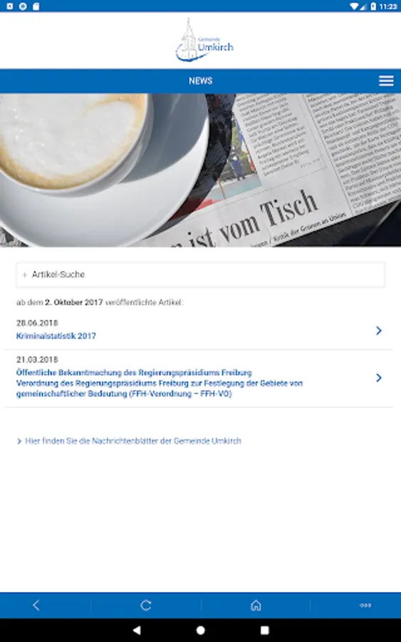 Discover the lovely community Umkirch! Among other things, the app informs you about current events, news and accommodation.