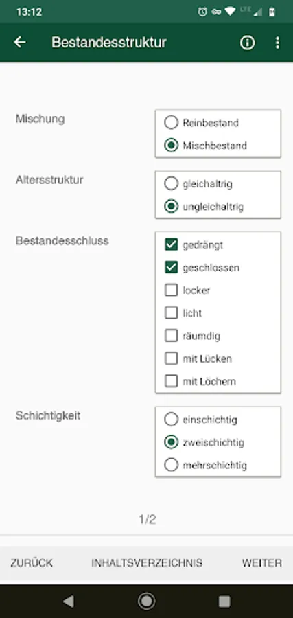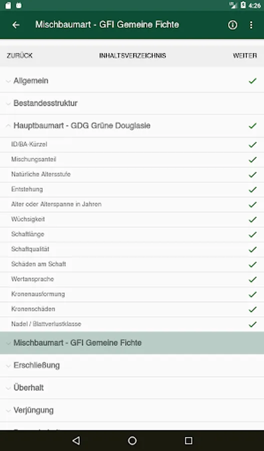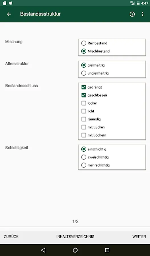 The so-called "verbal stand description" is a formalized description and assessment of a forest stand according to a variety of different criteria. The process is often used to describe the condition of a forest stand. In addition, the stand description provides important information for silvicultural analyzes and other silvicultural planning. For this purpose, the forest stand is characterized according to a fixed scheme, similar to a questionnaire.