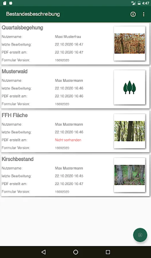 The app digitally accompanies the process of verbal description of the holdings, guides the user through the catalog of questions and enables data to be entered quickly. The results can be easily saved and shared in a PDF log, including image and geographic coordinates.