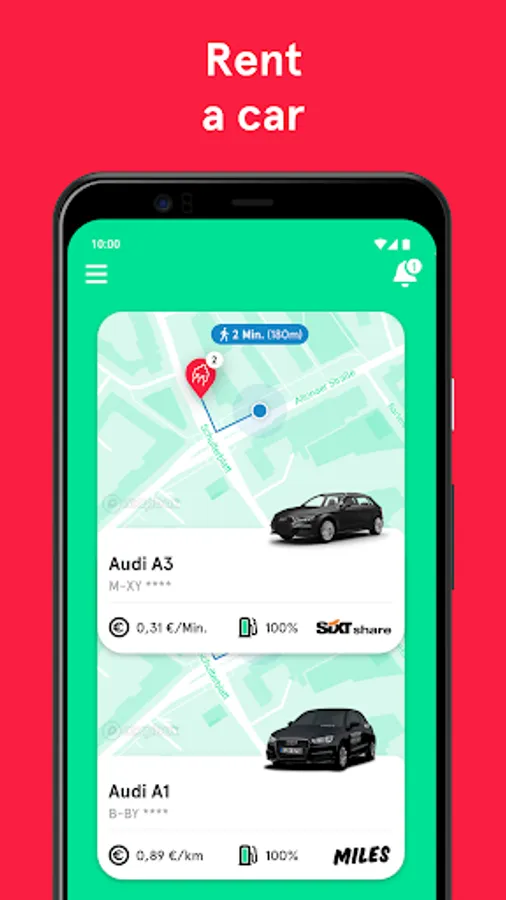 β’ Rent a car from SIXT share or MILES
