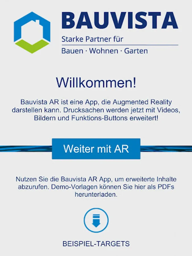 The app "BAUVISTA AR" lets you experience print products in a fascinating way. Additional virtual information such as picture galleries or videos enhance the print content and bring it to life. Real and virtual perceptions merge together and you can interact in real time between the two worlds. Let yourself be inspired and experience print in a new dimension. "BAUVISTA AR" only works for print products in which the "BAUVISTA AR" logo is displayed.