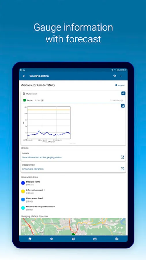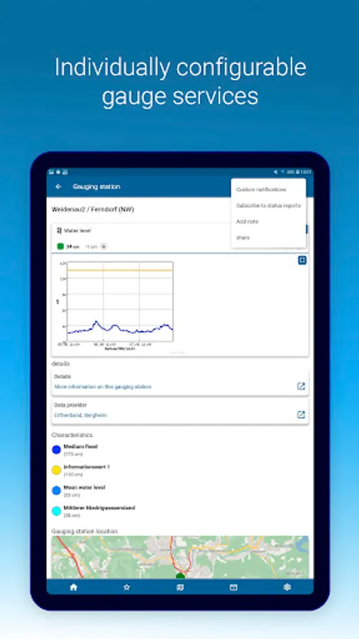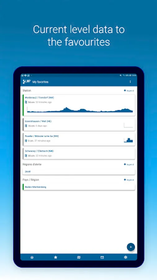 - Add gauges as favourites and view the water levels of all favourites in an overview