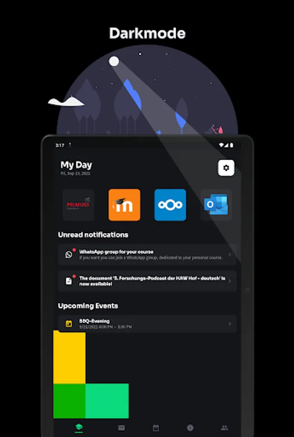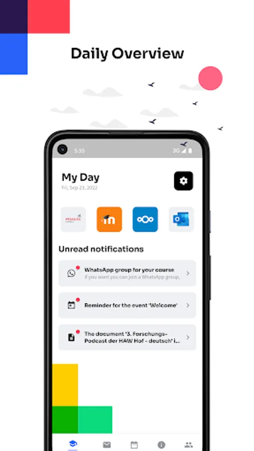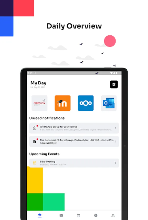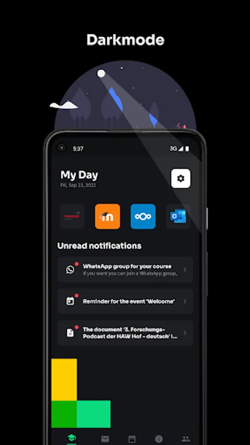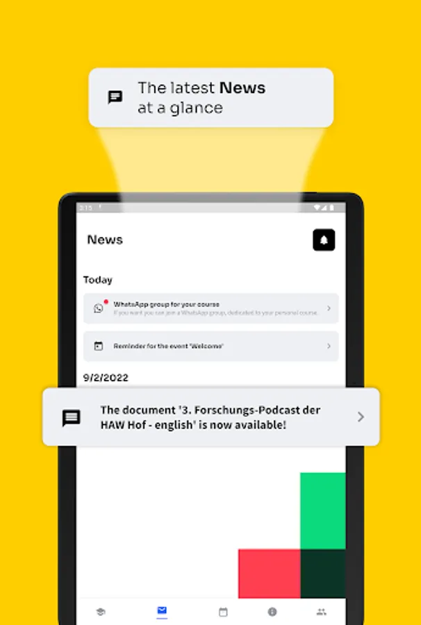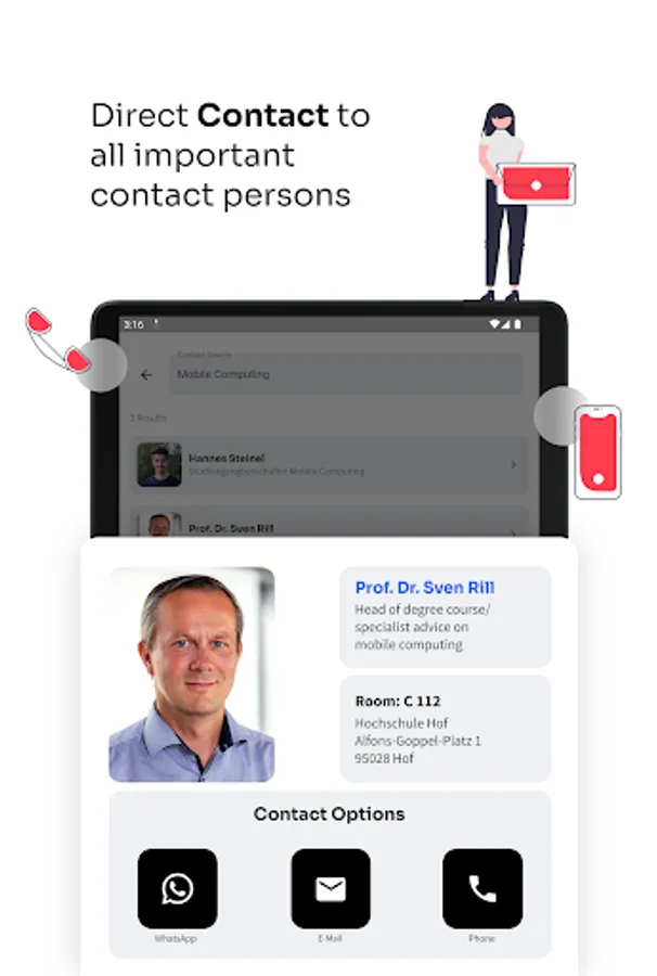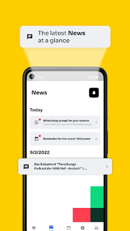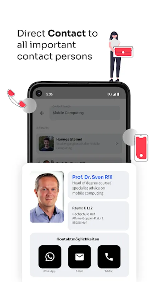 With our Ersti App you will receive all important information for the start of your studies at Hof University of Applied Sciences. With dates, events and news you will always be up to date and will not miss any important event. You will find all important contact persons and can network with them directly. You will be informed about important new information via push notifications.