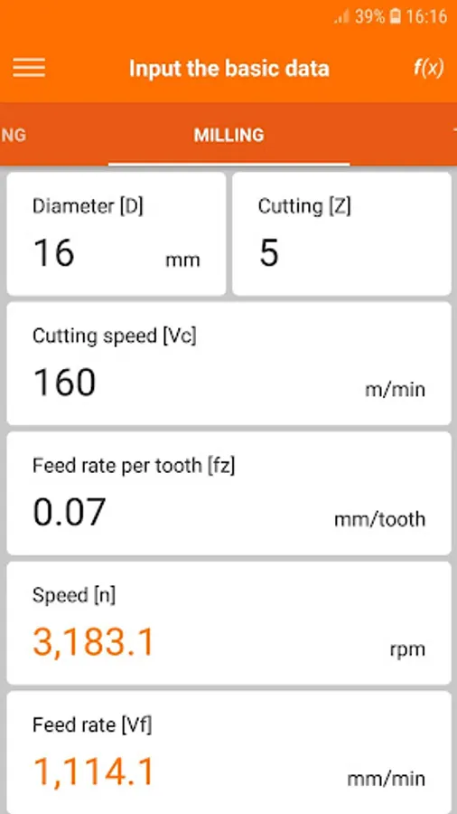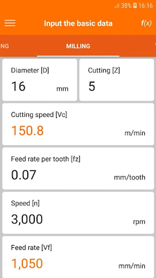 You can calculate the speed and feed rate for the production methods of turning, drilling and milling by entering the corresponding parameters, as well as subsequently readjusting them to the machine parameters.