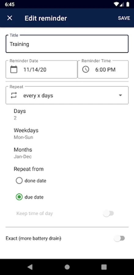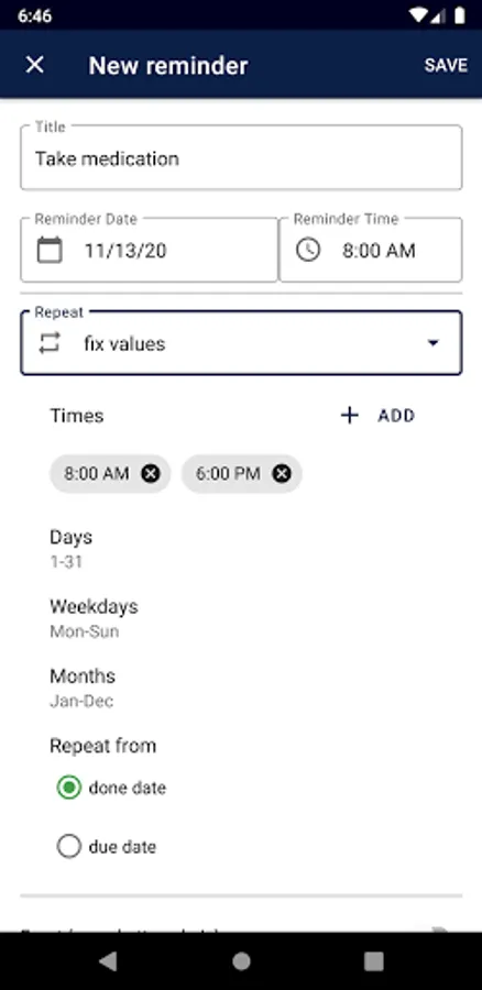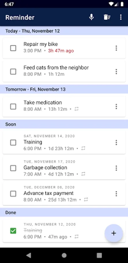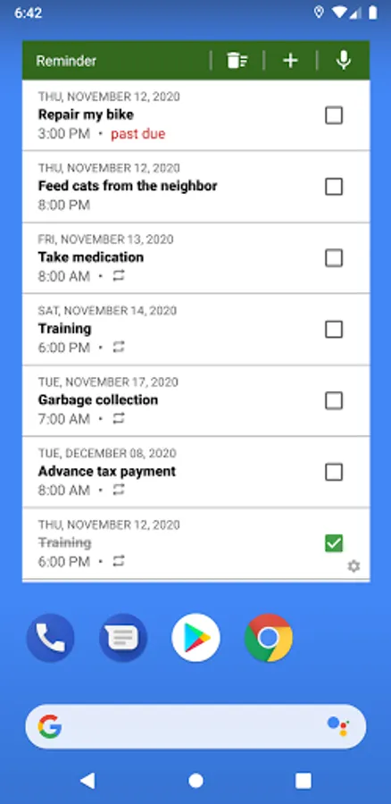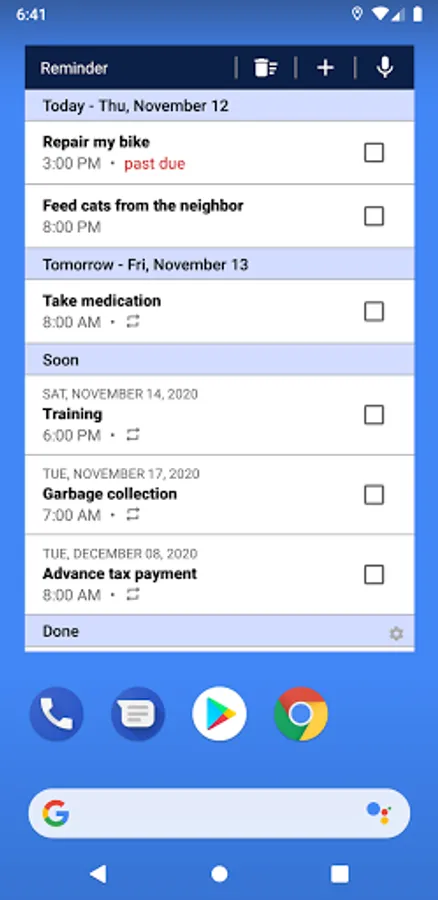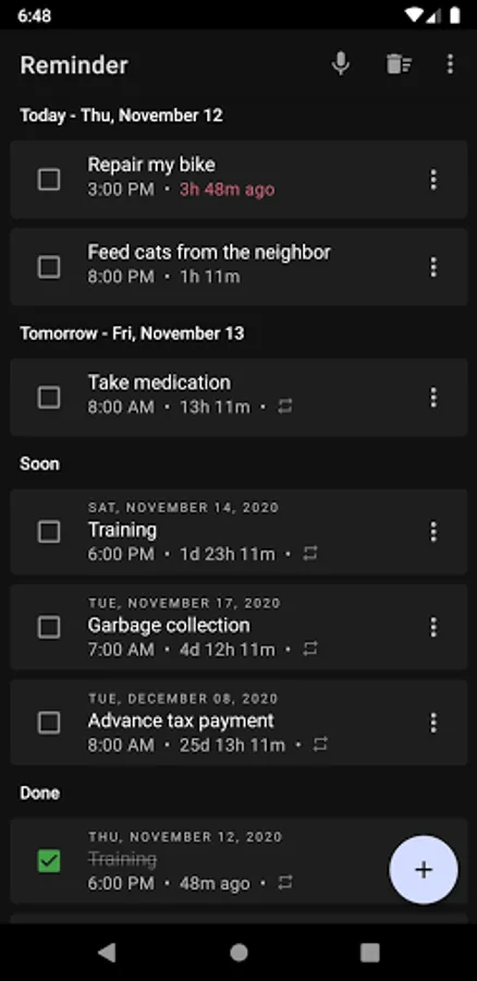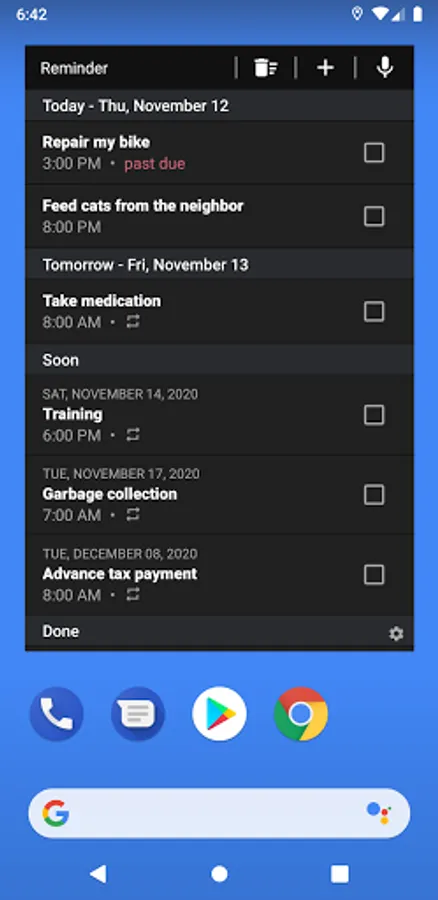 The layout of the Reminder App is customizable - colors, dark theme, list display.