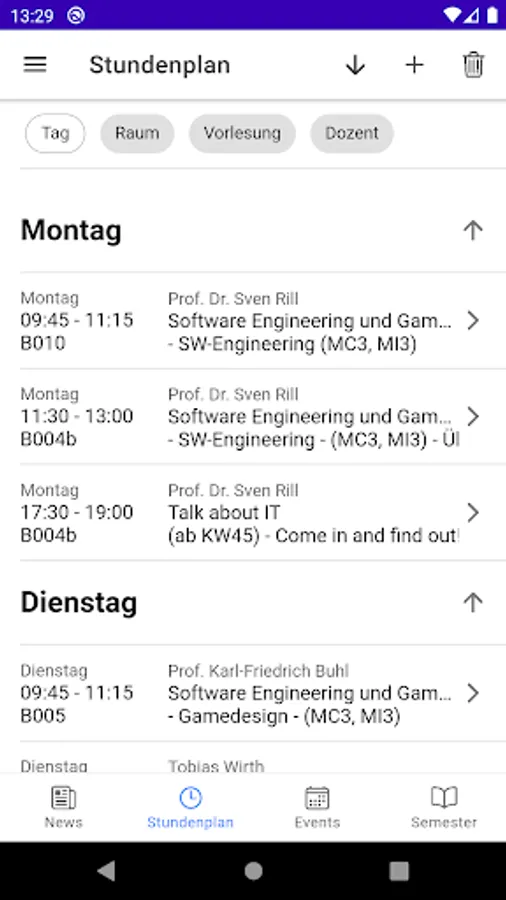 - Retrieval of module handbook, lecturer and room information for a lecture