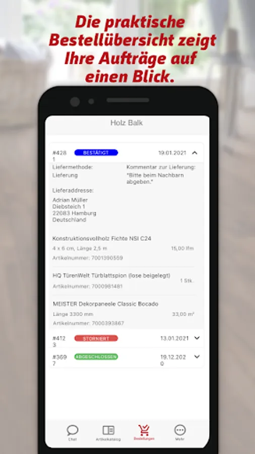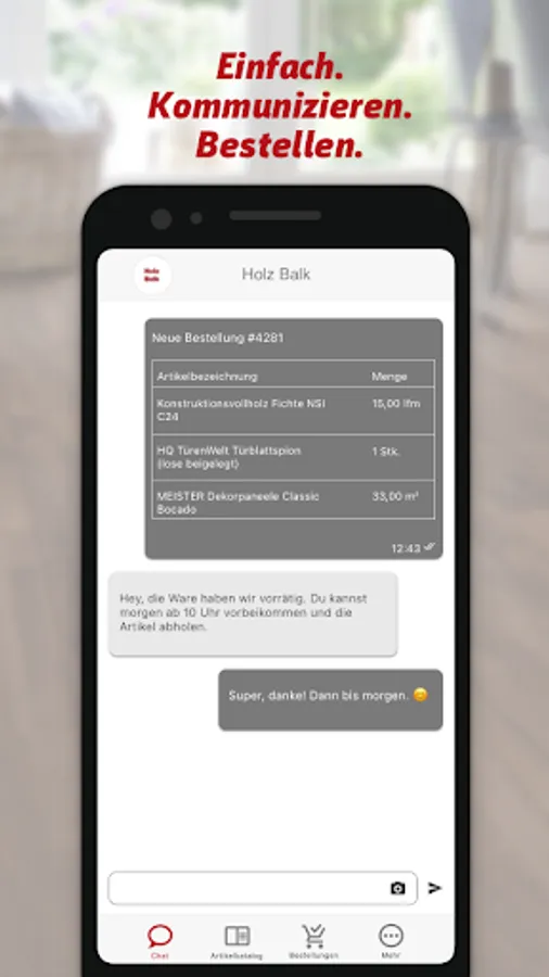 Attention craftsmen customers: The Holz Balk App is your digital interface to the local wood dealer.