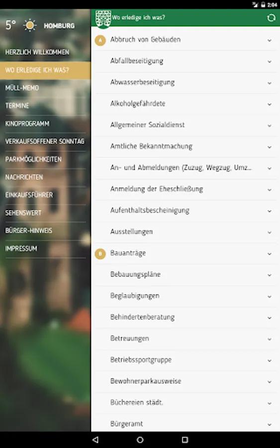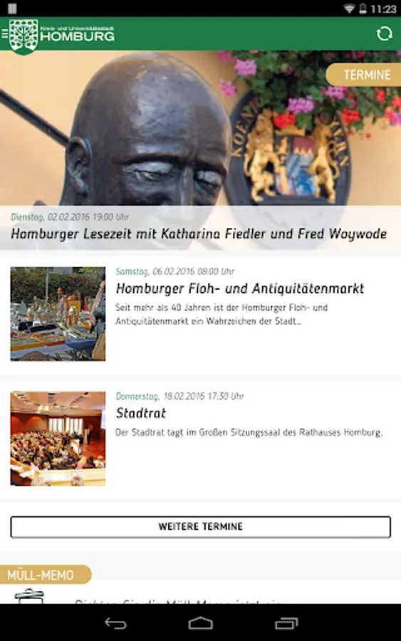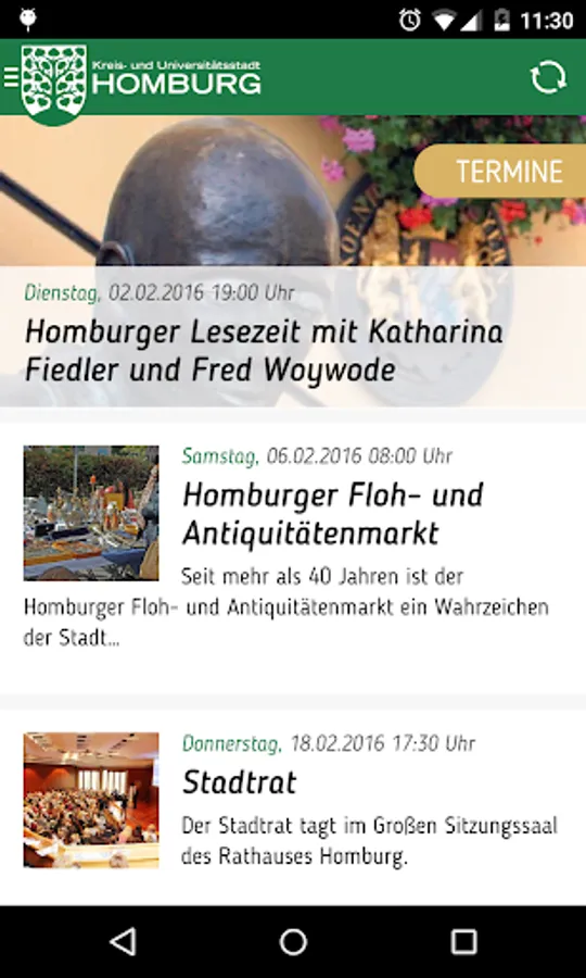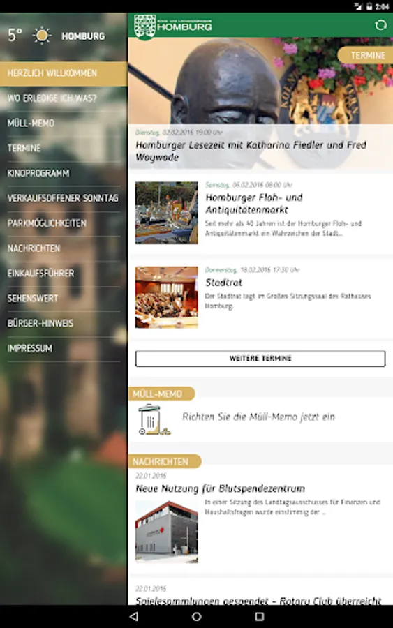 Homburg on the go: An app with the latest information about Homburg / Saar for citizens, tourists, business people and anyone who wants to know what the county and university town in the heart of the Saarpfalz circle provides Whether sights, cinema, shopping, authorities Finder and opening times, news from the city Hall, the current weather, all the important dates in the city and a memo function to dustbins flushes - the app provides information on all topics at a click.