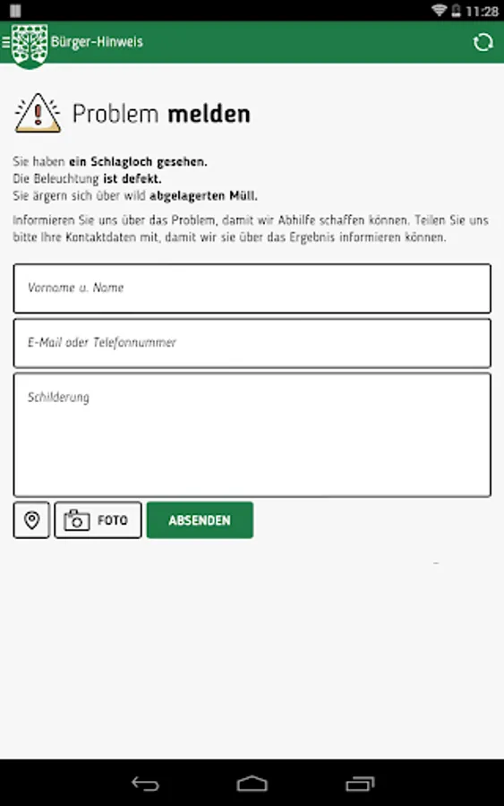 Share the town hall directly when a street lamp is broken or you have discovered a pothole. Or if you just have a suggestion for improvement. Your city administration provides a remedy and is looking forward to your advice.