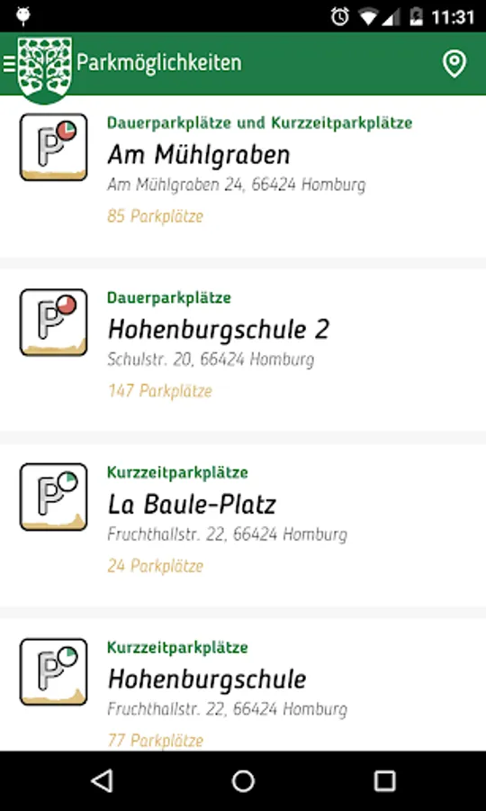 Whether permanent, short-term parking lot or parking garage. Thanks to the function "parking" you can find all parking in Homburg, including map features and of course the ability to use a route planner.