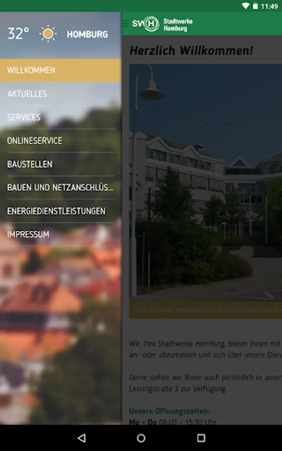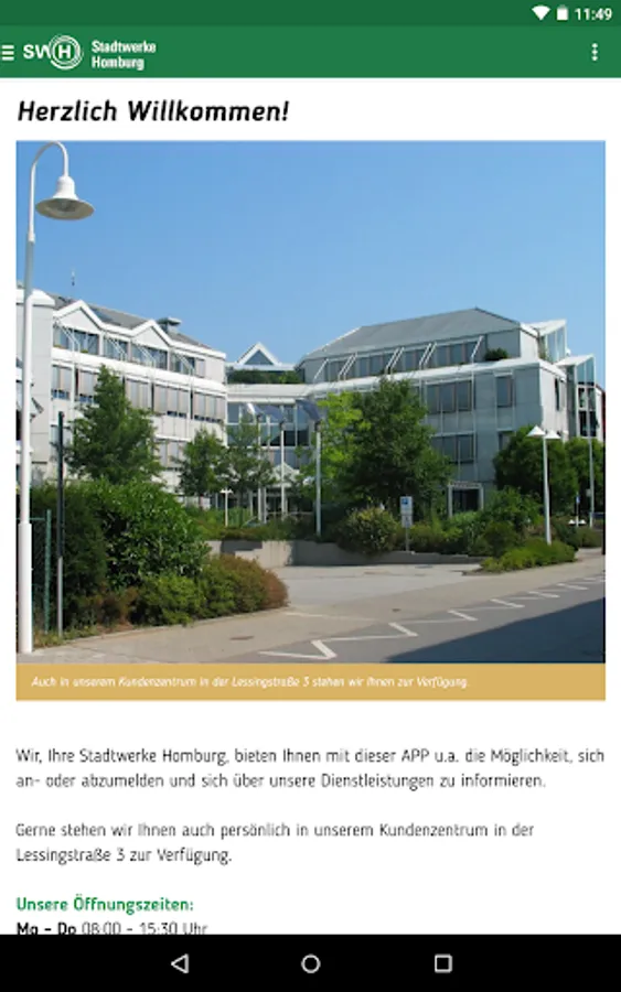 Moreover, informs the "My Stadtwerke Homburg" app with the "News" about significant events, such as opening times change on holidays. And current construction sites in and around Homburg can display.