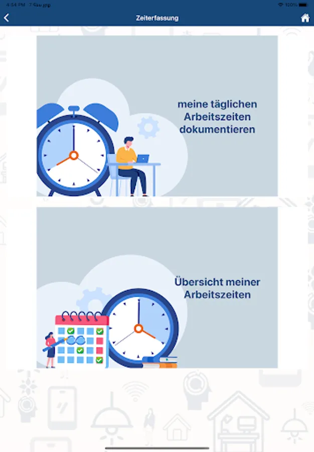 The home office app is the ideal assistant for your employees to set up and design home work at the telework place optimally and according to all legal standards and specifications as comfortably as possible. It helps your employees to set up their home office, supports them with all tasks and routine actions, such as time recording or submitting sick leave, and even ensures that colleagues comply with the statutory rest periods and recovery periods.