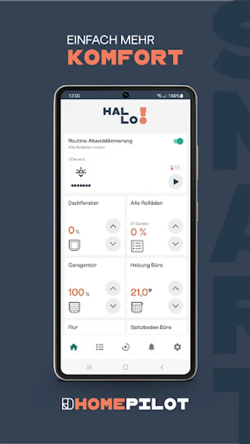 The basis for the HOMEPILOT Smart Home is our radio system, which is based on over ten years of experience and is one hundred percent Made in Germany. Doubly safe: All device information, data and routines are stored locally on the device, so you can operate your Smart Home at any time even without an Internet connection. Thanks to regular updates, the HOMEPILOT app is absolutely future-proof and new functions are constantly being added. So you can be sure that your Smart Home will still be a perfect fit for your life years from now.