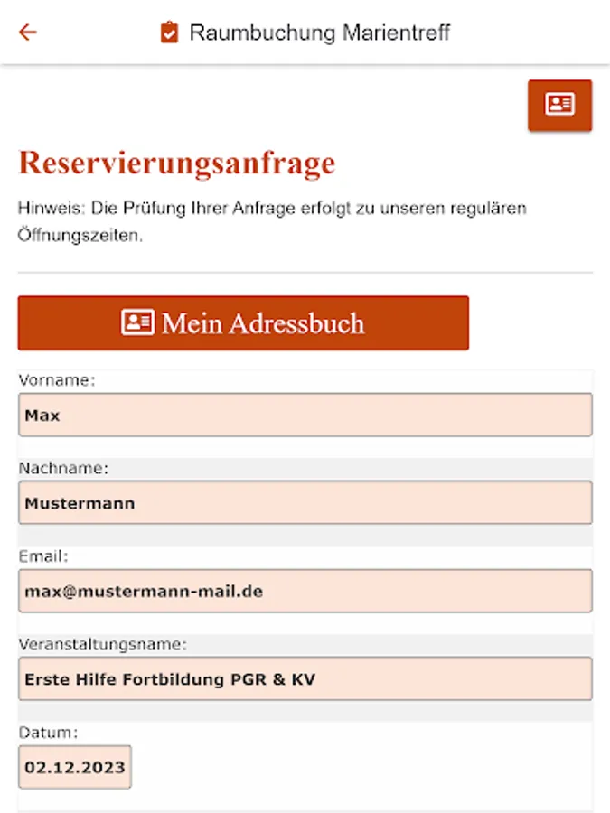 - Integration in the homepage: registration for church services or events (e.g. children's and youth camps, pilgrimages, etc.), room reservations, appointments, etc.