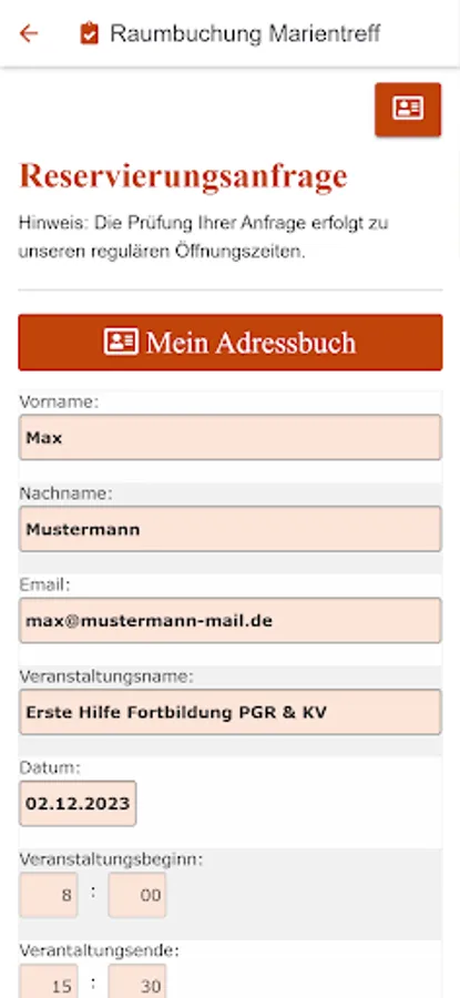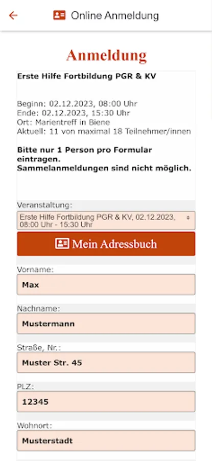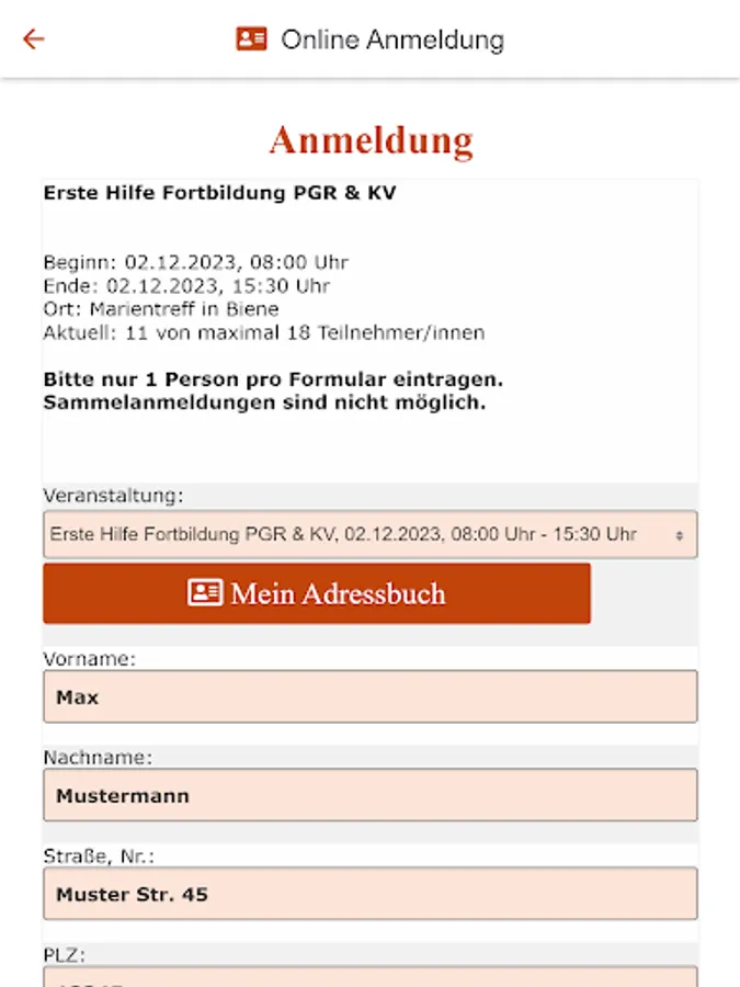 - Registrations for church services or events with your own local address book so that registrations can be carried out with just a few clicks