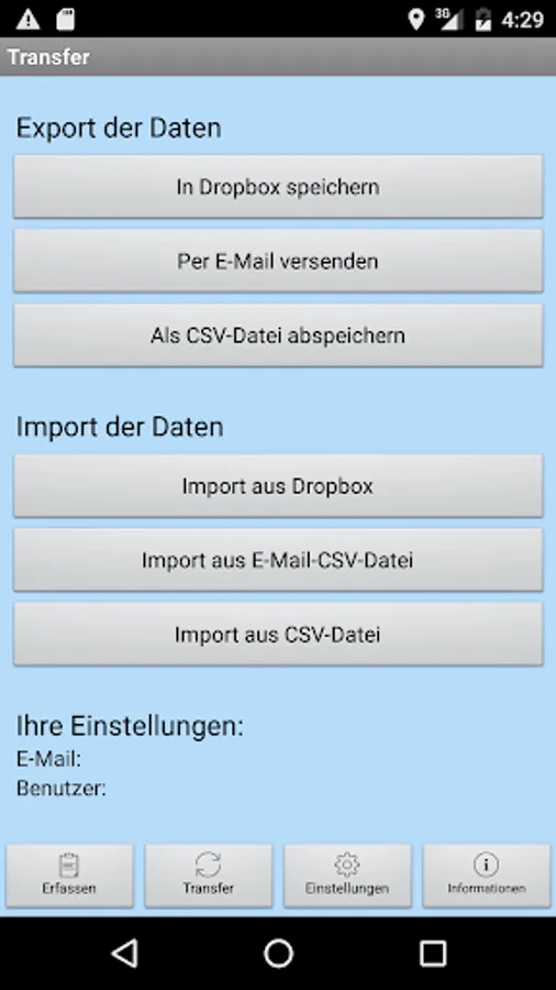 The great thing about the app is that you can export all collected data into a CSV file. The synchronization of data is done in seconds via Dropbox. Alternatively, the data can be synchronized via email.
