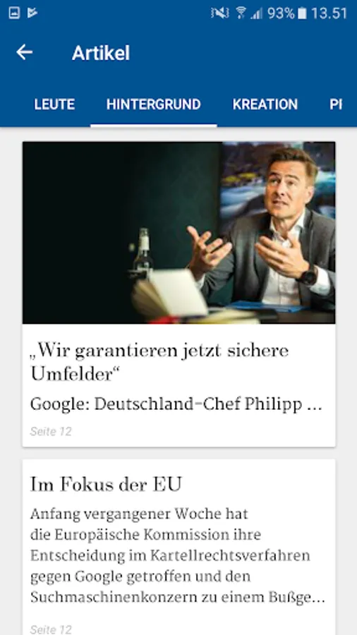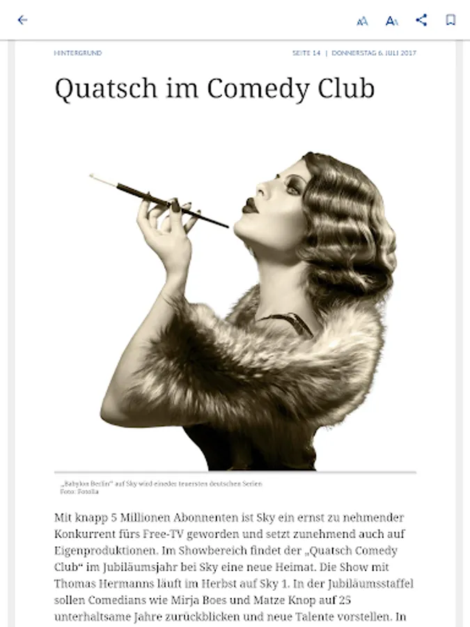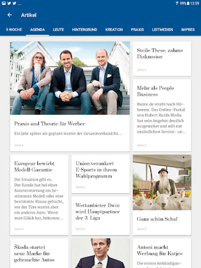 It is simple and easy to read: The output can be browsed by swiping and zoom by finger pull. A search function allows you to search for keywords across the entire issue and the App archive. Every single item can be tapped and will appear in a scalable, clearly structured reading mode in portrait and landscape mode. Also image galleries can be viewed.