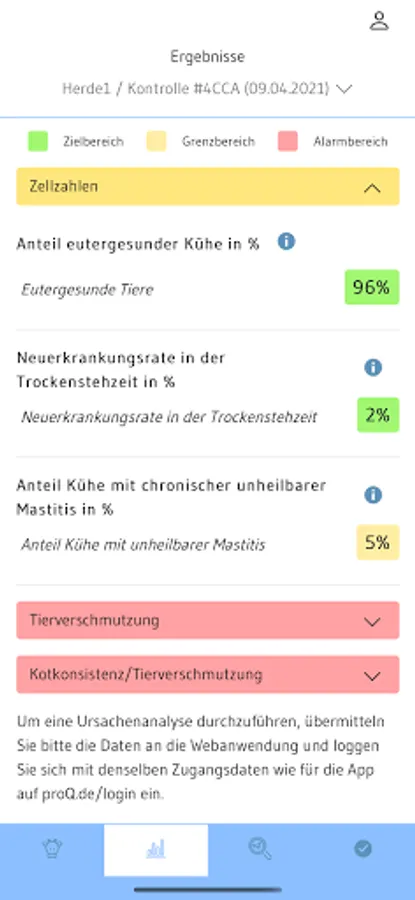 The Pro-Q-BW app enables dairy farmers to easily carry out their own checks based on animal-related criteria (animal welfare indicators). In the event of abnormalities in the animals, the app supports the targeted search for weak points in the housing system, the causes of which can be very complex. A structured and effective weak point analysis is carried out in the areas of stable construction, husbandry technology, animal health and management as well as feeding. As a result, an individual action plan for improving the housing conditions can be drawn up on the basis of suggested measures.