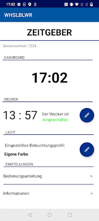 The app enables the control of the learning factory timer "WHISTLEBLOWER".