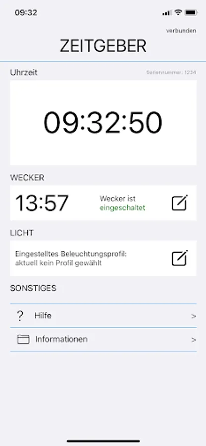 This is a physical device with an audible time announcement. The user has the option of setting and configuring various functions via the app. These include an alarm function, a silent mode and individually adjustable lighting profiles.