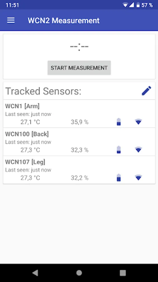The Wireless Climate Network - WCN2 Measurement App let's you easily configure and perform measurements of your WCN2 sensors. The WCN2 sensors measure temperature and relative humidity and transmit the sensor values via Bluetooth Low Energy. The WCN2 system supports an arbitrary amount of sensors and multiple receivers at a time.