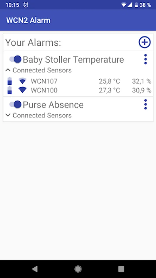 The Wireless Climate Network - WCN2 Alarm App let's you easily define alarms for your WCN2 sensors. The WCN2 sensors measure temperature and relative humidity and transmit the sensor values via Bluetooth Low Energy. The WCN2 system supports an arbitrary amount of sensors and multiple receivers at a time.