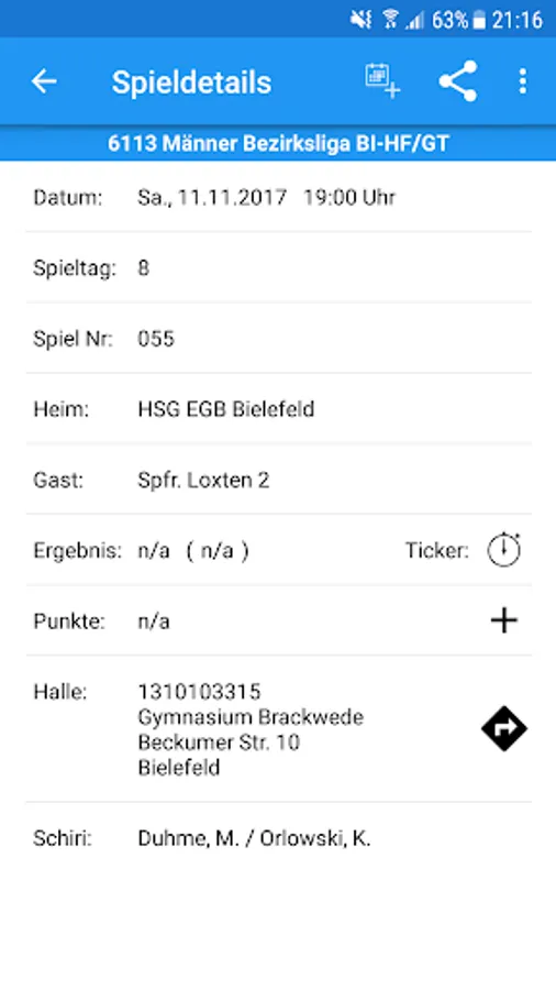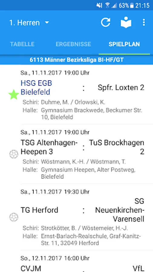 - Home Calendar to display the next home games of all HSG ETUC Bielefeld Teams