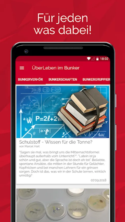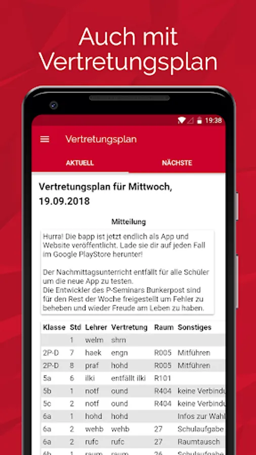 "Bapp" is an online offer of the student newspaper Bunkerpost at the Hermann Staudinger Gymnasium Erlenbach. Read the latest articles on hot topics that interest the whole school. Receive information regarding failing teachers and unscheduled changes as well as important notifications about the substitution plan.