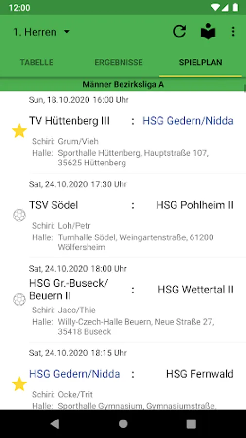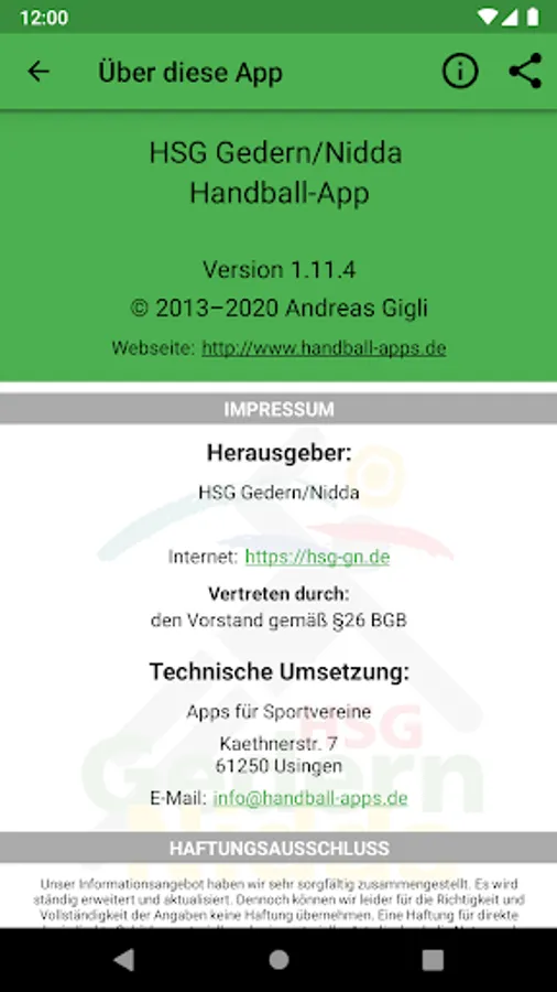 - Home game calendar to display the next home games of all HSG Gedern / Nidda teams