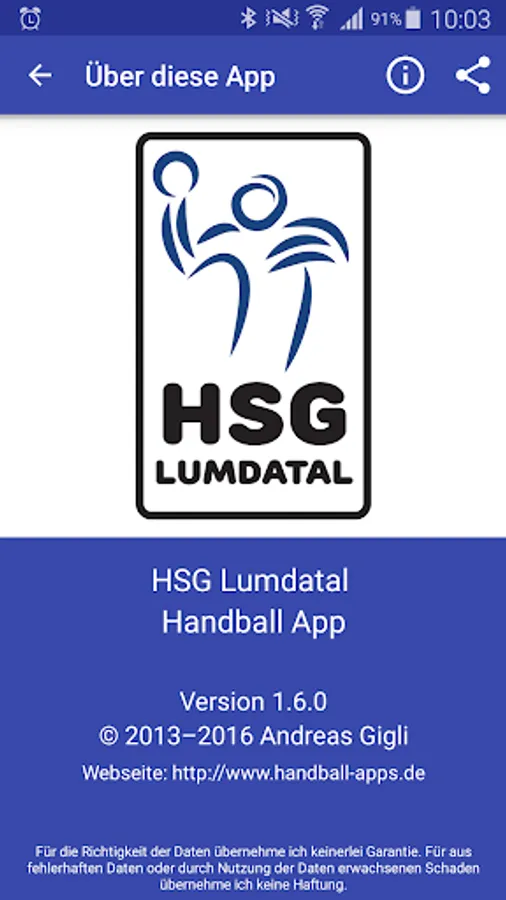 The official handball App HSG Lumdatal.