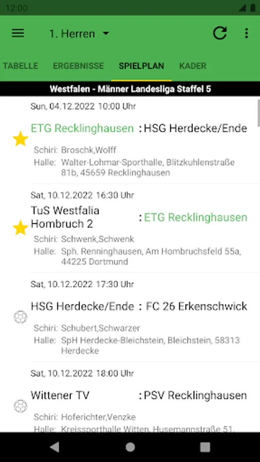 With this app you have scores, results and fixtures of all ETG Recklinghausen teams always in view.