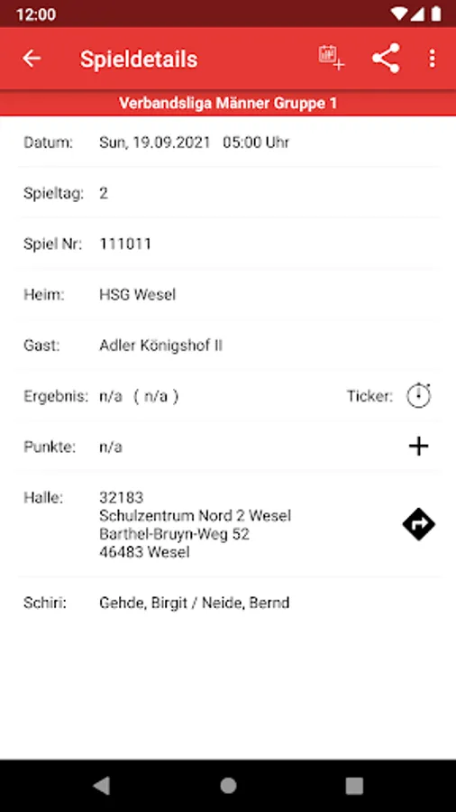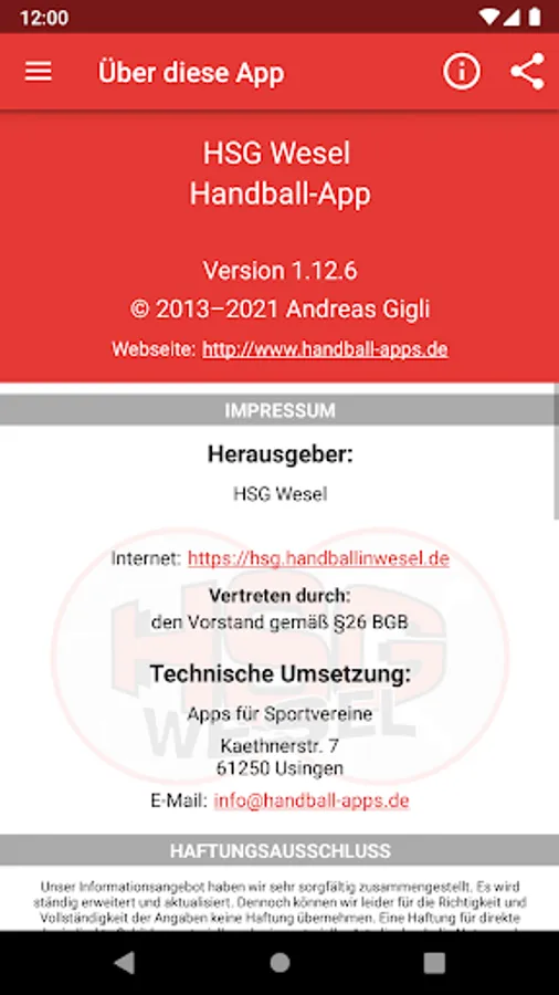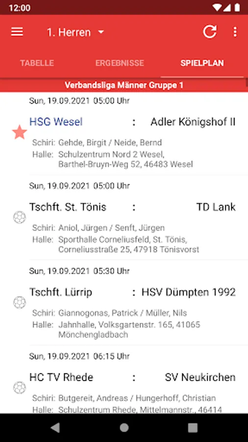 - Home game calendar to display the next home games of all HSG Wesel teams